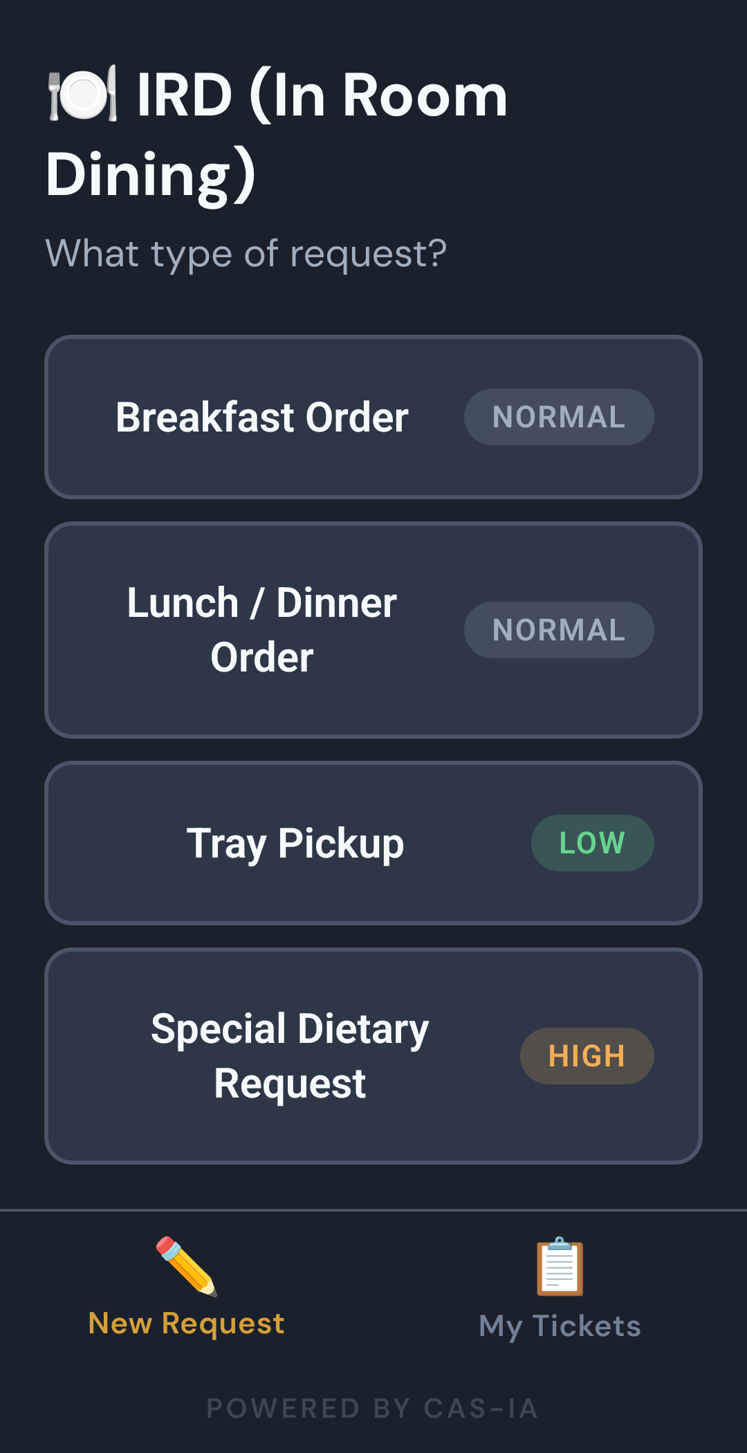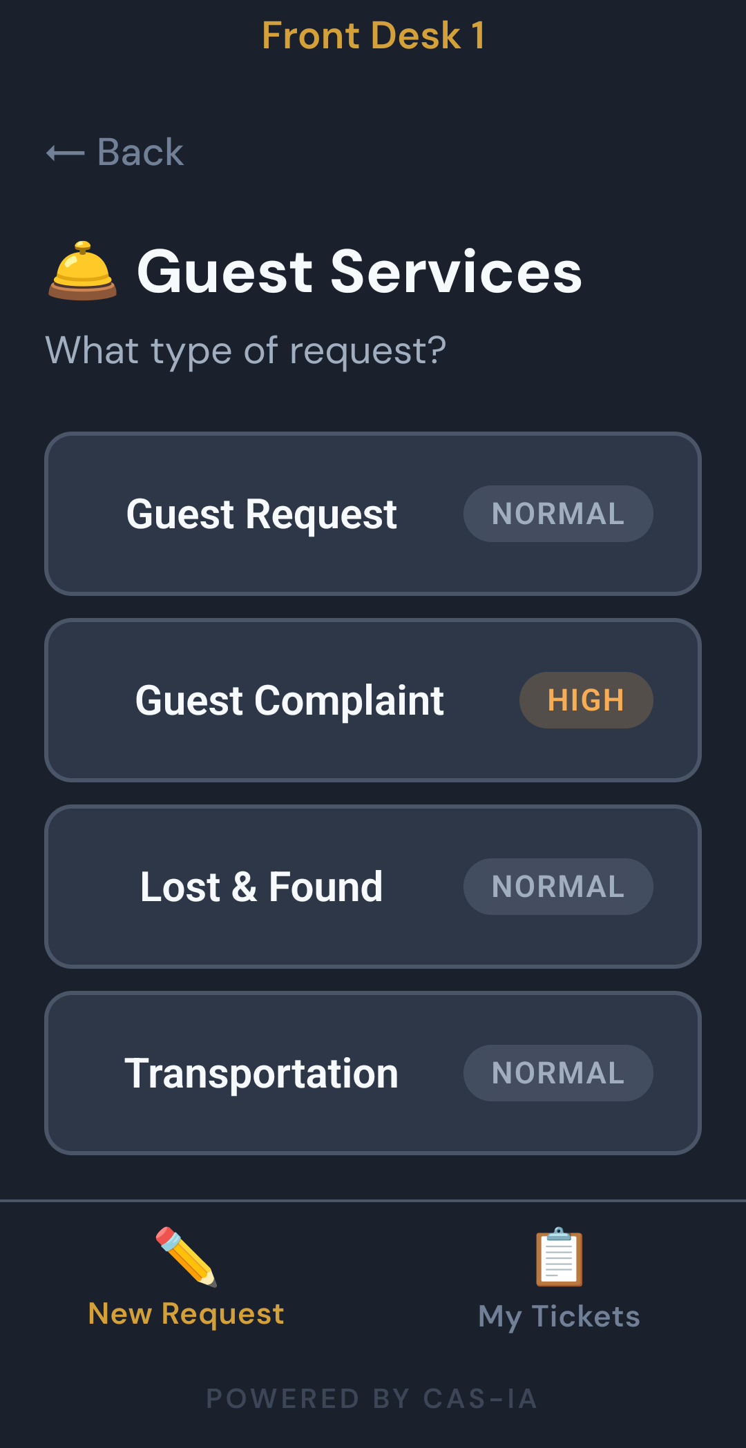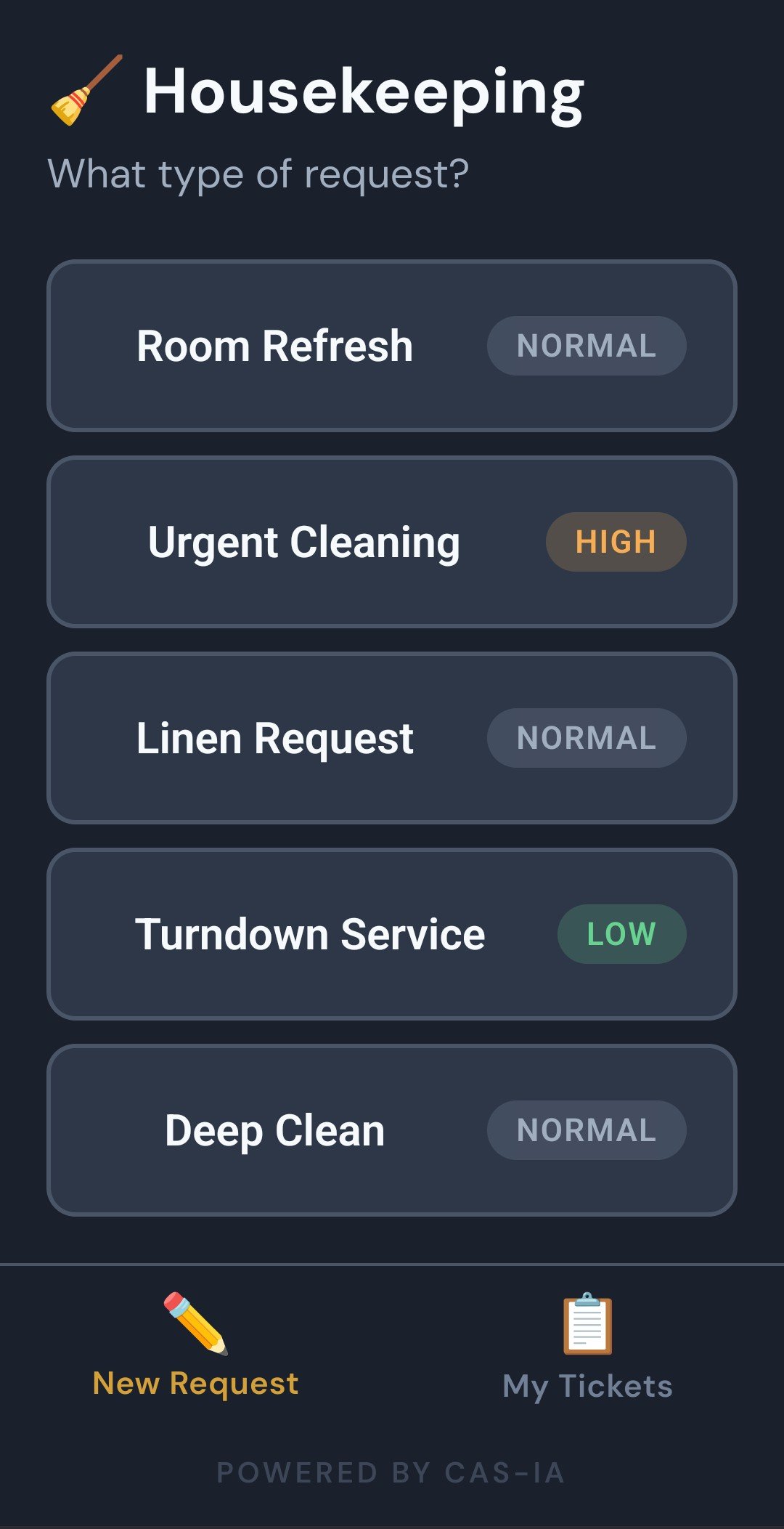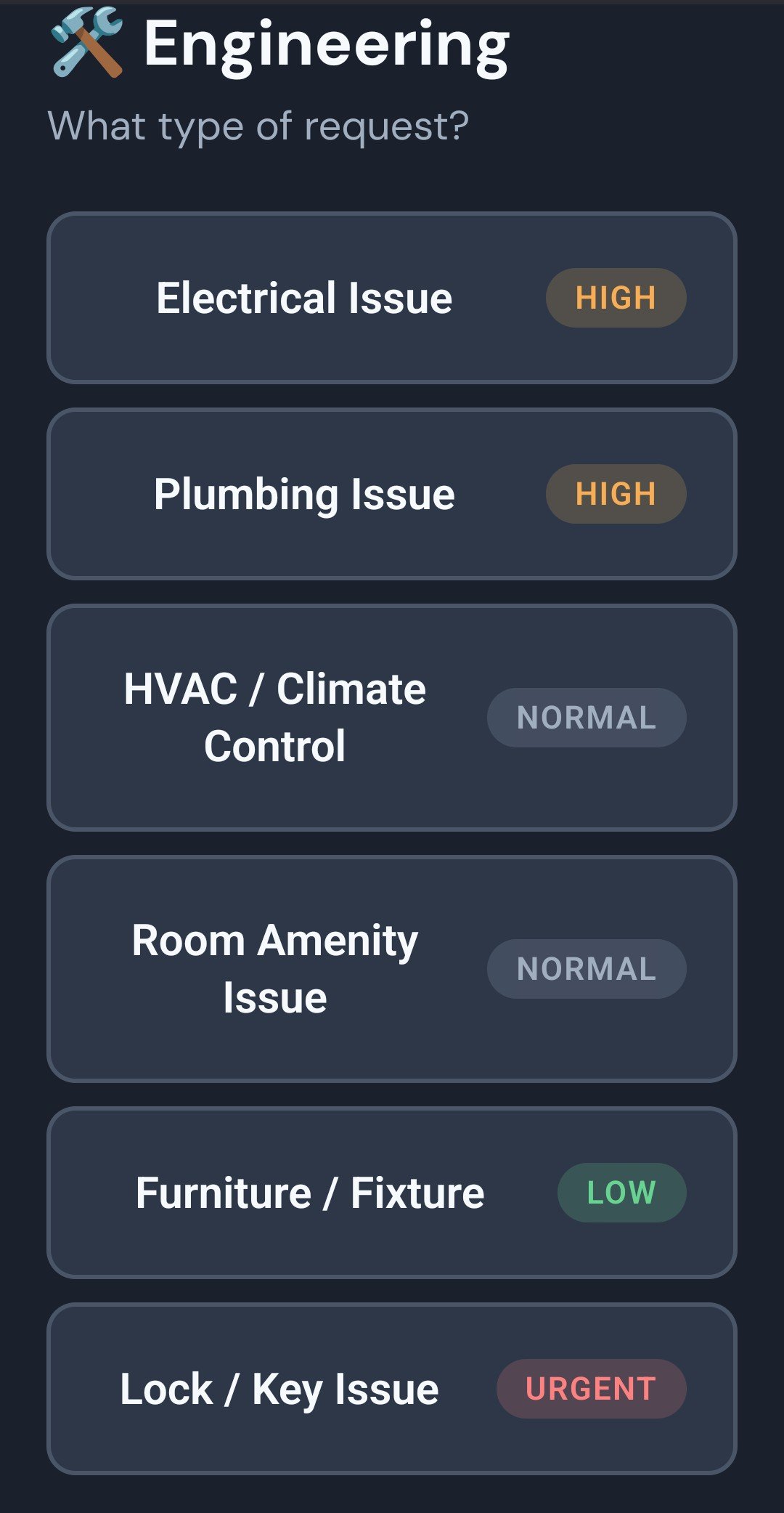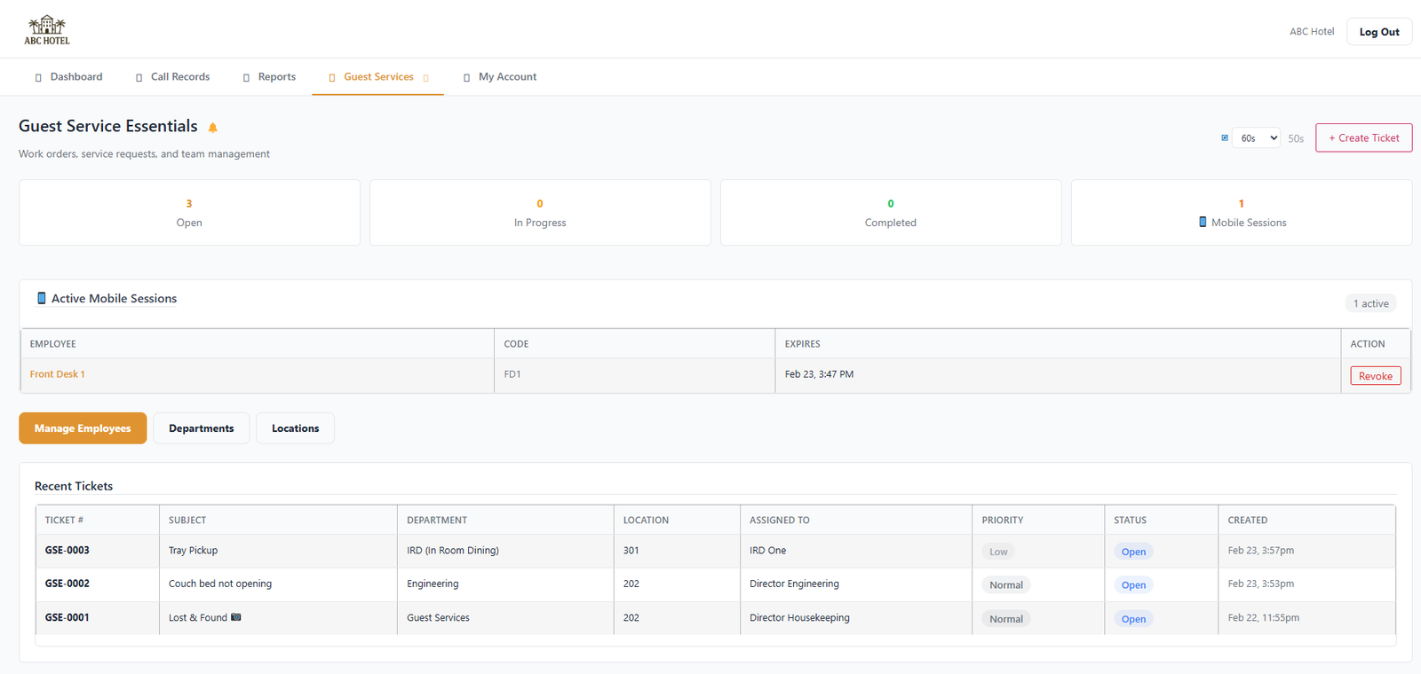 Housekeepers, Engineers, IRD (In Room Dining) and Guest Service teams, along with other custom teams, can work to resolve guest service issues quickly.